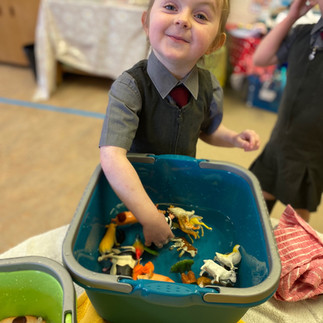 We planted beans to see if we can grow our own beanstalk! We learned how to tell the time (o clock) and sort and count 1c,2c5c and 10c coins. We enjoyed playing in our class farm shop and washing the farm animals in water play. We have also been painting spring flowers, and farm animals.