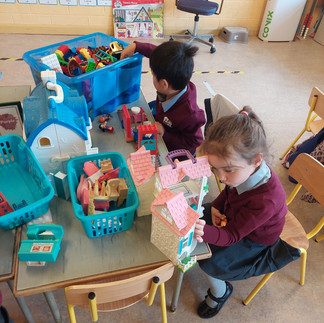 In September Ms. McDonnell's class were learning all about homes. We played in the home corner, built houses with Lego and played with the dolls houses. In October we learned about school and autumn and we went on an autumn hunt. Take a look at some of the fun we've had!