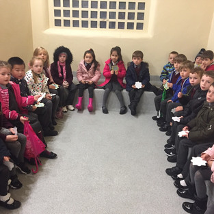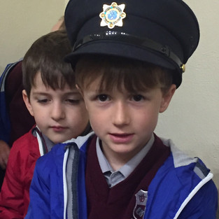 We braved the rain to visit the Garda Station and were given a great welcome even having traffic stopped for us ! We spent time in the cell, learned about the role of the Garda , and Ms. Breen had to agree to let us off homework or risk arrest !