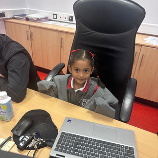 In September Ms. Flaherty's Class visited Mr. Kelly's office. We learnt how to be a principal and how to look after all the boys and girls in school. We took turns doing all the important Principal jobs likes wearing a special suit, taking care of the school keys, to writings letters on the computer, making very important phone calls on the phone and watching all the boys and girls on the camera when they play outside. It was lots of fun to be a Principal for the day.